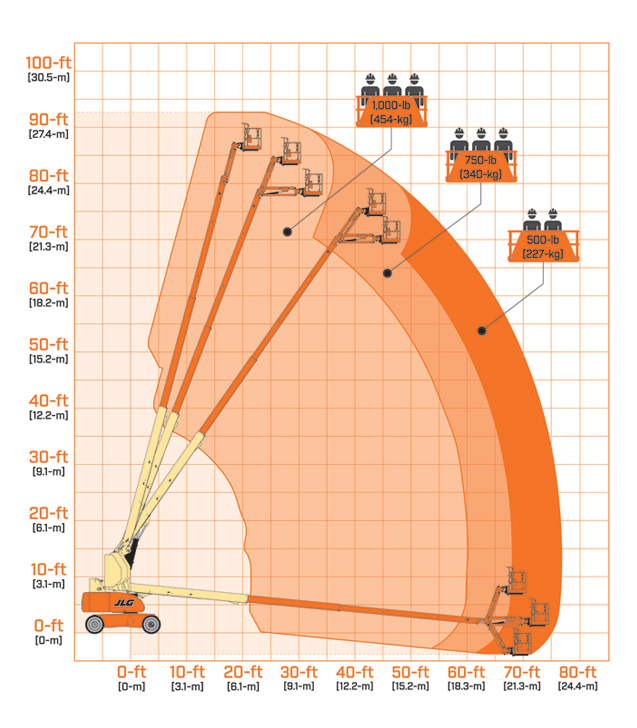 * Please call us with any questions about our 86 foot telescopic boom lift with jib rentals in McAllen, Harlingen, Brownsville, Houston, San Antonio, New Braunfels, & San Marcos TX.